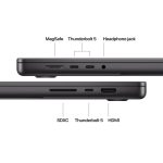 Equipado com 3x Thunderbolt 5 | HDMI | SD Card | MagSafe 3, Wi-Fi 6E e Bluetooth 5.3. Inclui câmara FaceTime HD 1080p e sistema de som de 6 colunas com woofers com Áudio Espacial.