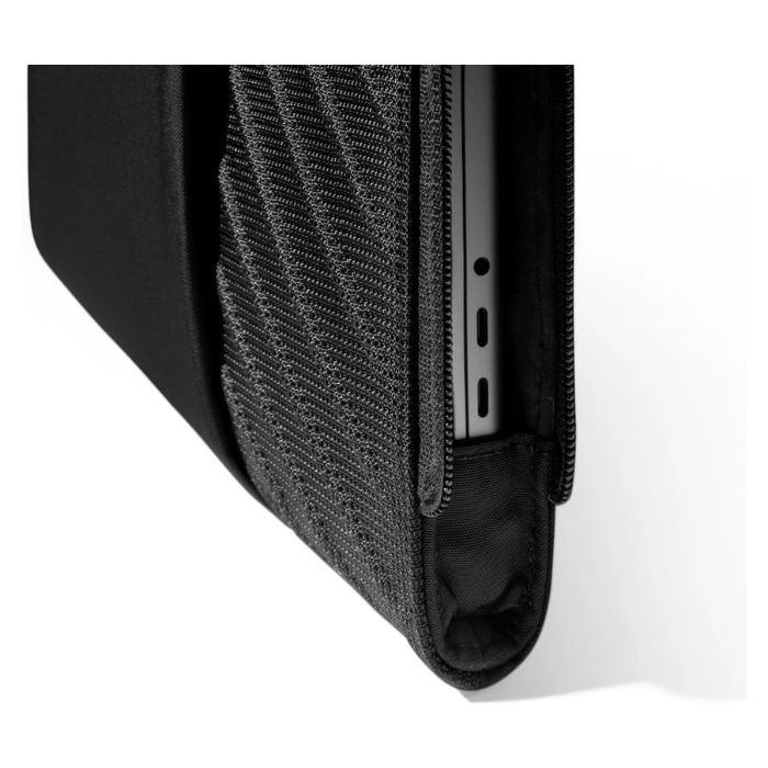A abertura dupla permite retirar e colocar o MacBook de forma rápida e cómoda. O bolso frontal adicional oferece espaço para guardar cabos, carregadores, cartões ou outros pequenos acessórios, mantendo tudo organizado numa solução ultra-compacta.