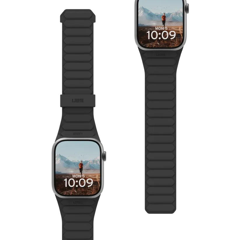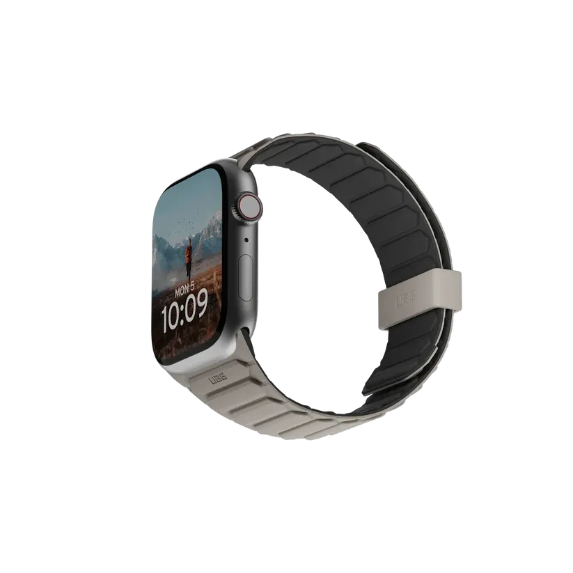 A Bracelete UAG Pathfinder para Apple Watch 49/45/44/42mm eleva a experiência do smartwatch com um fecho magnético inovador, design reversível e materiais premium, tornando-a ideal tanto para o dia a dia urbano como para atividades desportivas mais exigentes.