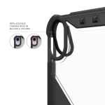 A shell em policarbonato transparente mostra o design original do iPad enquanto a frame em TPU absorve impactos e protege as zonas mais vulneráveis. O rebordo elevado garante que o ecrã e a câmara ficam protegidos em quedas com qualquer face voltada para baixo.