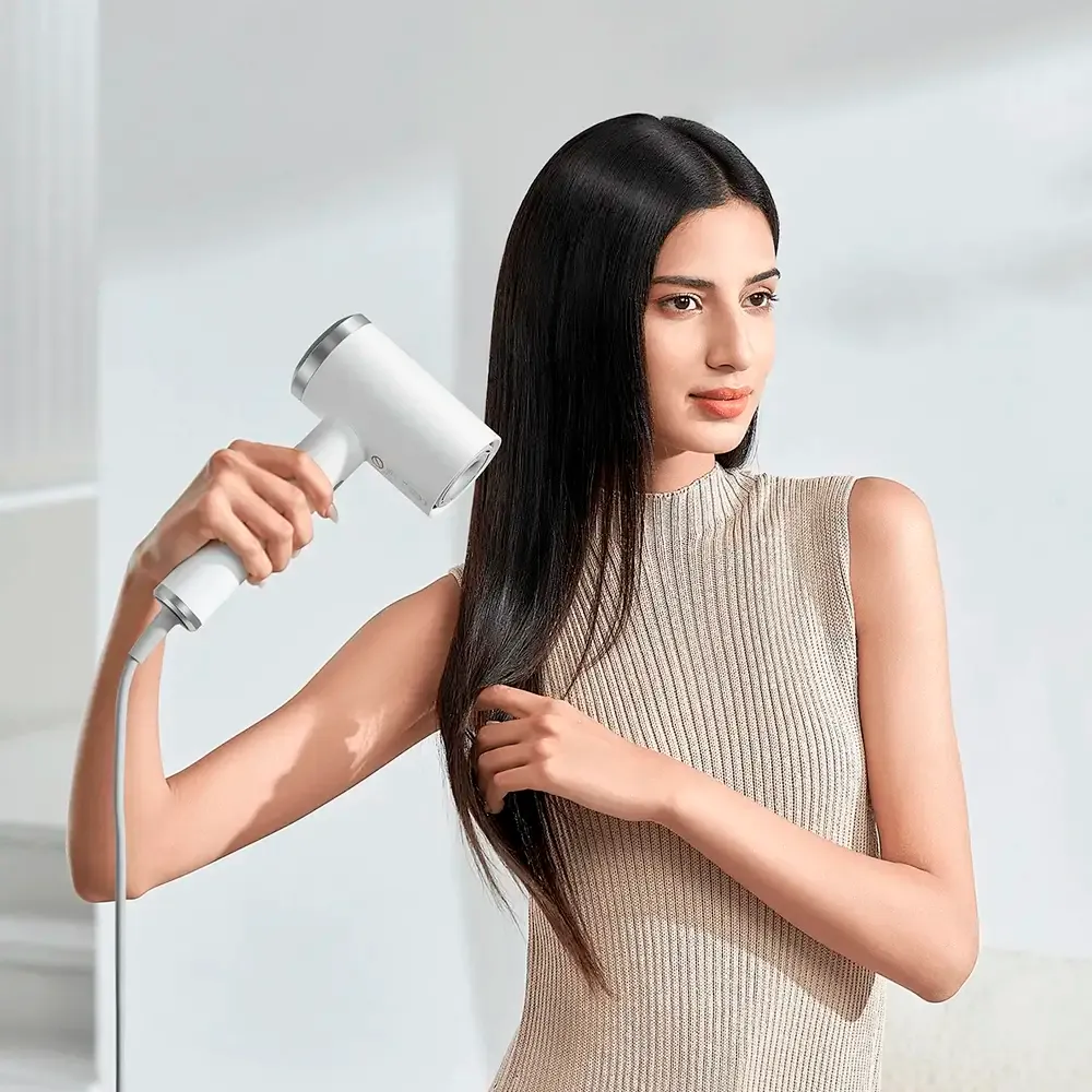 O Secador Xiaomi High-Speed Iconic Hair Dryer usa motor 110000rpm com iões negativos para secagem rápida e brilho.