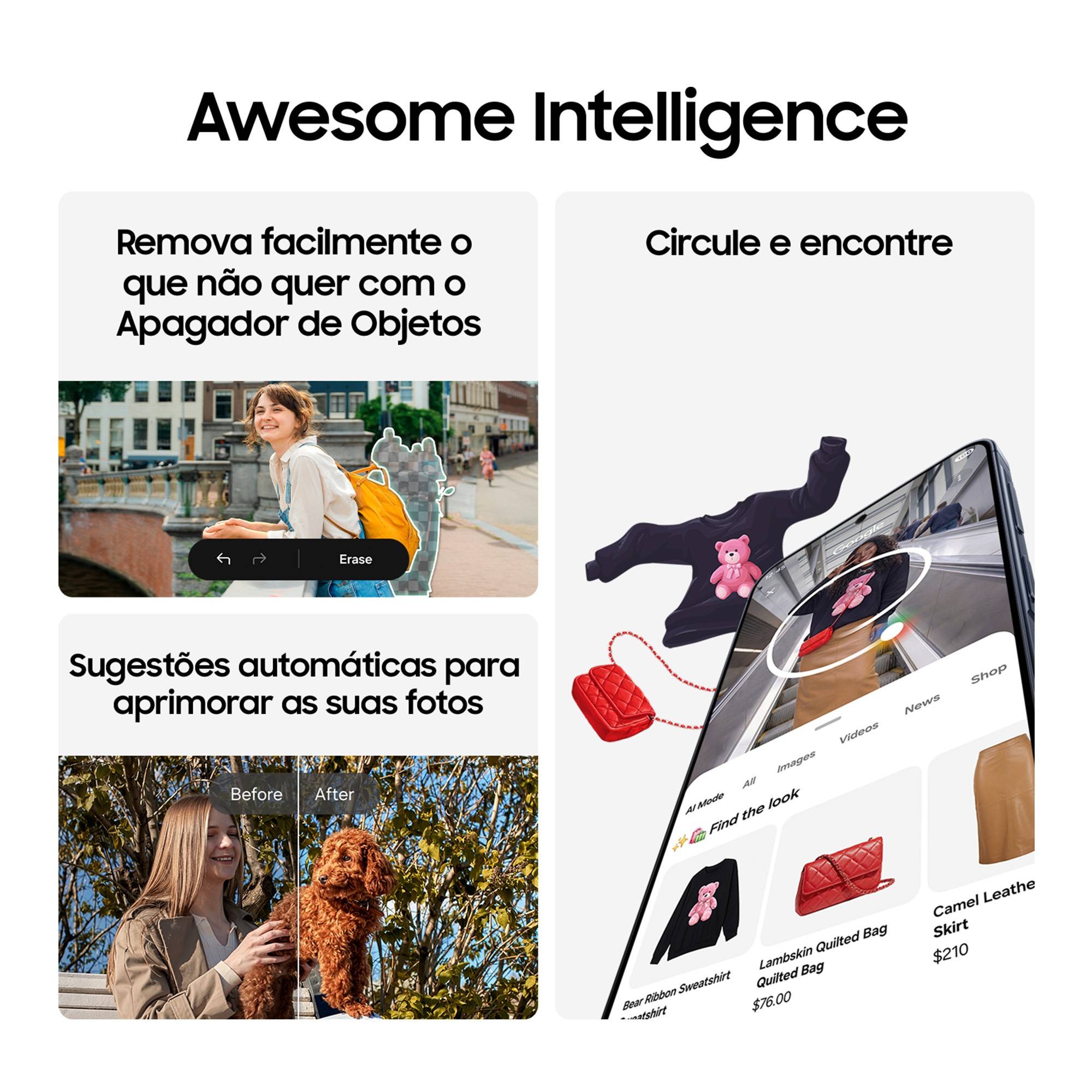 - Segurança: IP68, Gorilla Glass Victus+, impressões digitais ótico, Samsung Knox