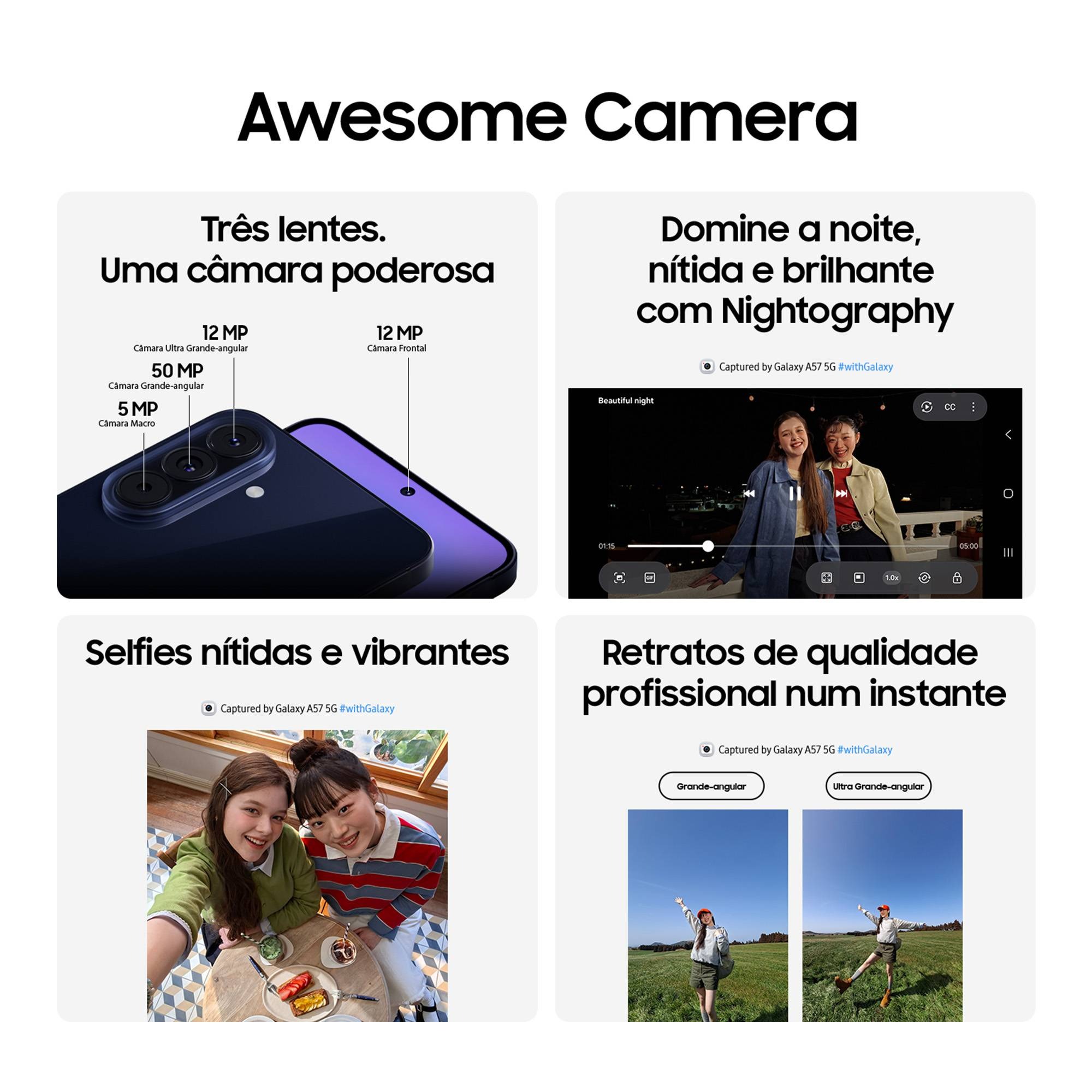 Smartphone Samsung Galaxy A57 5G 8GB/128GB Cinzento – Design Premium, IA Avançada e Nightography Video