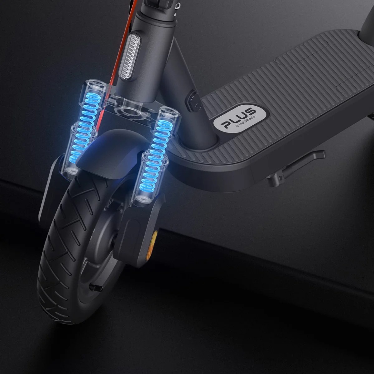 Pneus 10 polegadas auto-selantes. Conforto e segurança. Suspensão frontal.